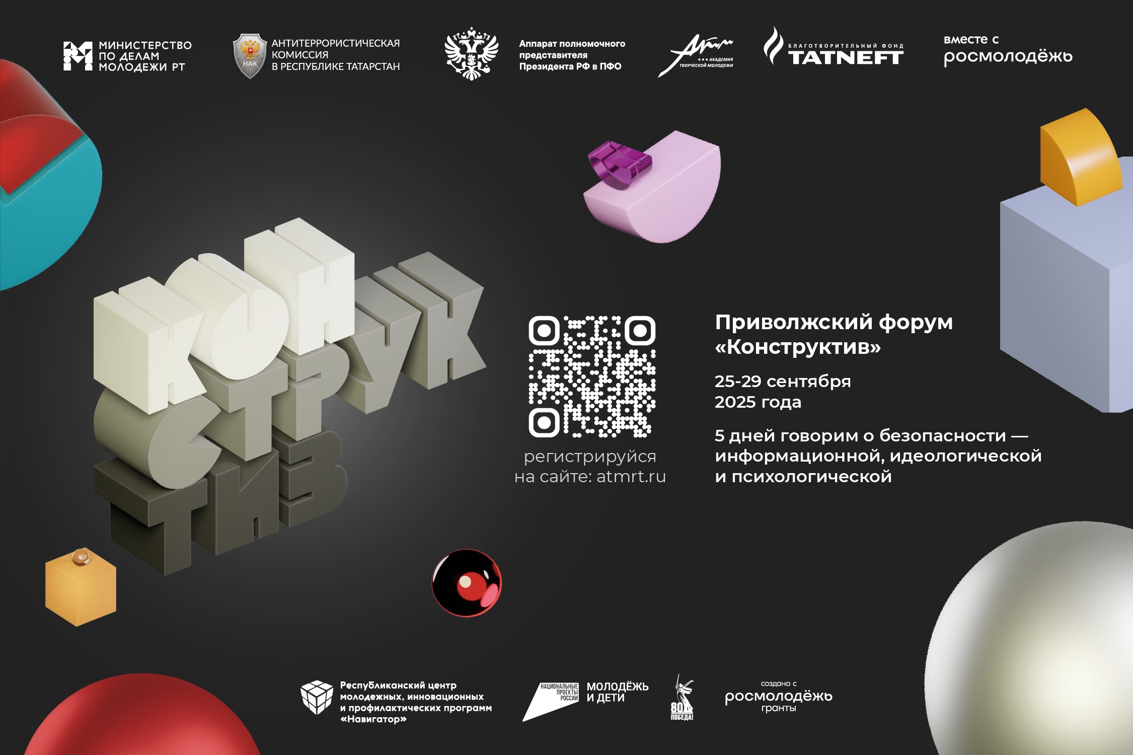Форум «Конструктив» реализуется министерством по делам молодежи РТ и аппаратом антитеррористической комиссии в РТ совместно с Академией творческой молодежи РТ при поддержке аппарата полномочного представителя Президента Российской Федерации в Приволжском федеральном округе, Федерального агентства по делам молодежи и благотворительного фонда «Татнефть».