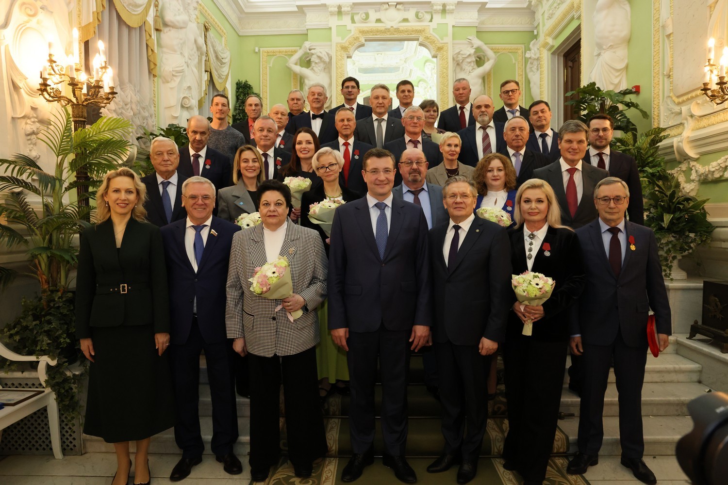 Фото Александра ВОЛОЖАНИНАГубернатор Глеб Никитин вручил государственные награды 33 представителям разных сфер деятельности за особые заслуги перед регионом. Звания «Почетный гражданин Нижегородской области» удостоены: генеральный директор госкорпорации «Росатом» Алексей Лихачев, генеральный директор ОМК Анатолий Седых, генеральный директор АО «Ильино-Заборское» Алексей Степанов, министр финансов Нижегородской области Ольга Сулима, экс-глава МСУ Вадского округа Иван Ураев.