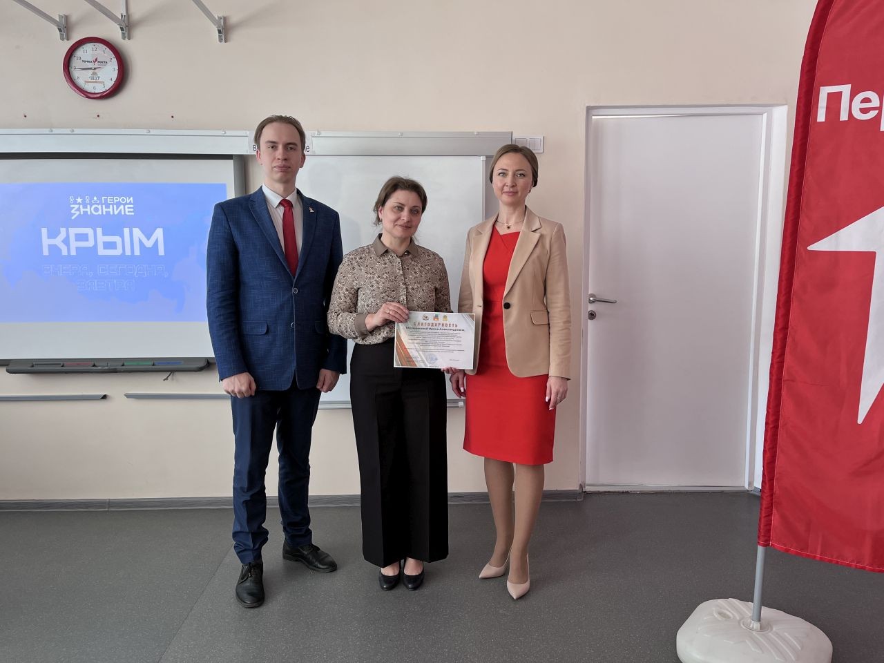 Фото Нелли КАШИНОЙУрок о Крыме провёл приглашённый специалист из Нижнего Новгорода – Иван Федорович Дорофеев из центра «Авангард». Опытный лектор сумел найти ключ к сердцам юной аудитории, превратив сложный историко-политический материал в увлекательный и доступный рассказ.