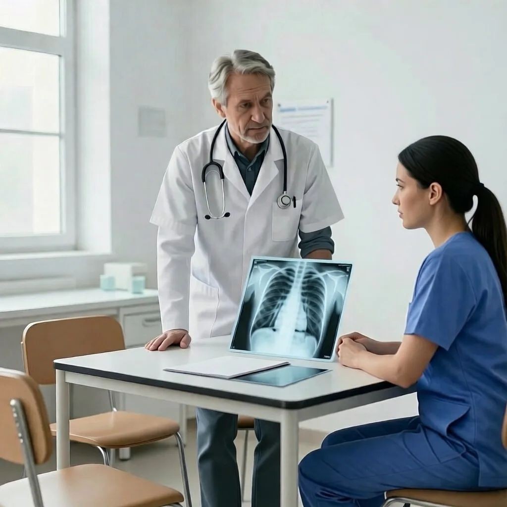 • при появлении боли в груди, кашля с мокротой, температуры или ночной потливости — незамедлительно обращаться за дополнительным обследованием.